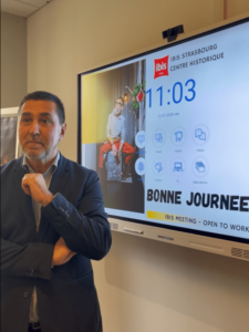 Précédemment équipé de vidéoprojecteurs, L’Hôtel Ibis Strasbourg Centre Historique *** était à la recherche d’une solution fiable et moderne pour dynamiser ses salles de réunion. L’objectif de Thierry Vignals, directeur de l’hôtel : proposer des solutions faciles d’utilisation et intuitives pour l’organisation de visioconférences, réunions en présentiel…